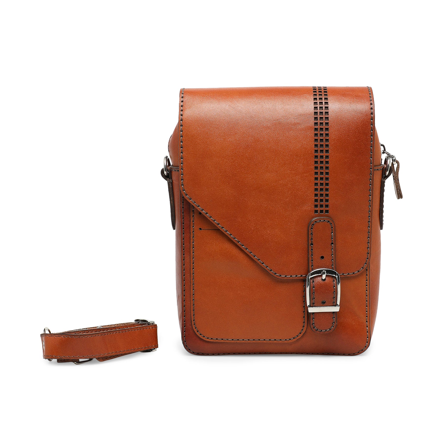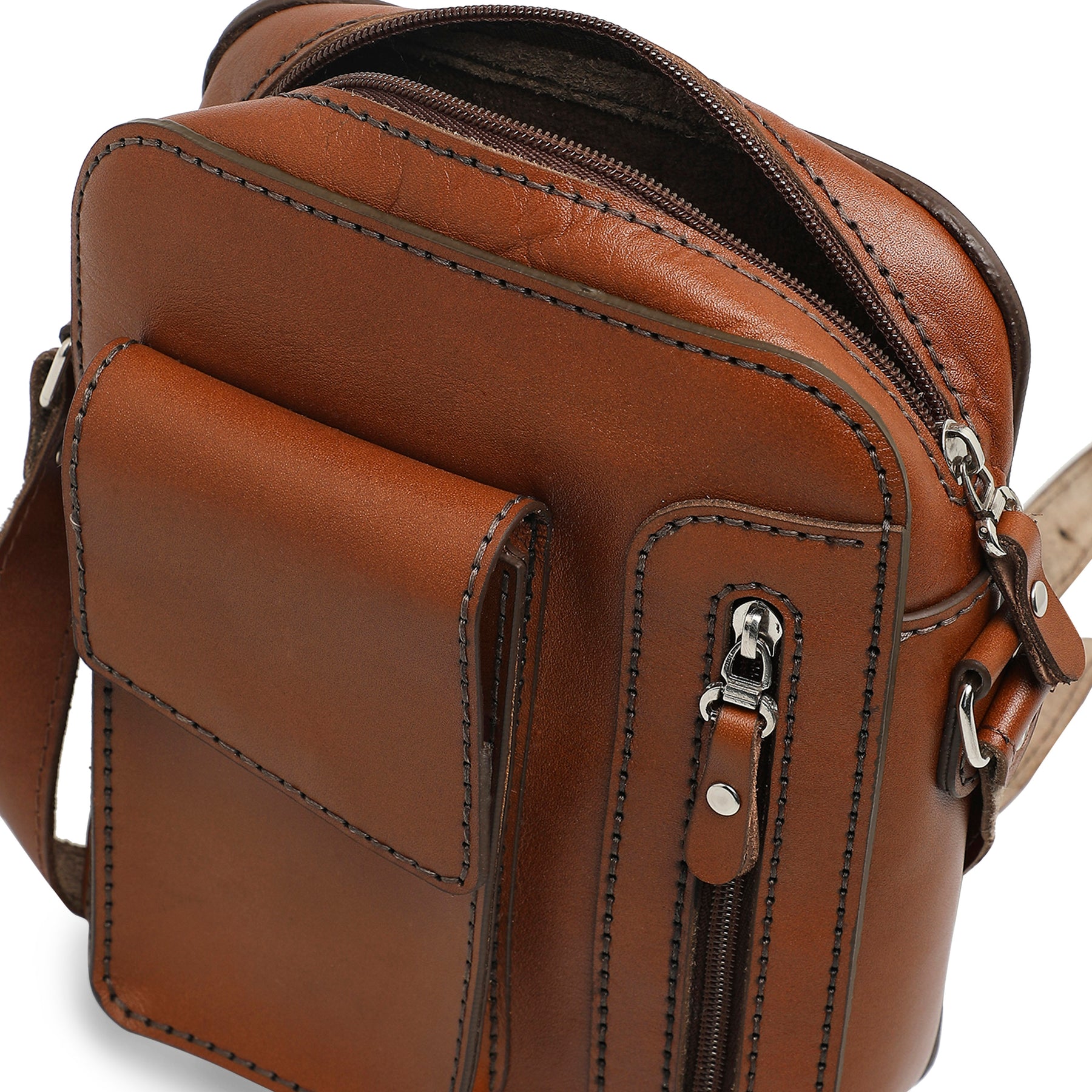 Michelle Men's Genuine Leather Side Messenger Bag - Tan