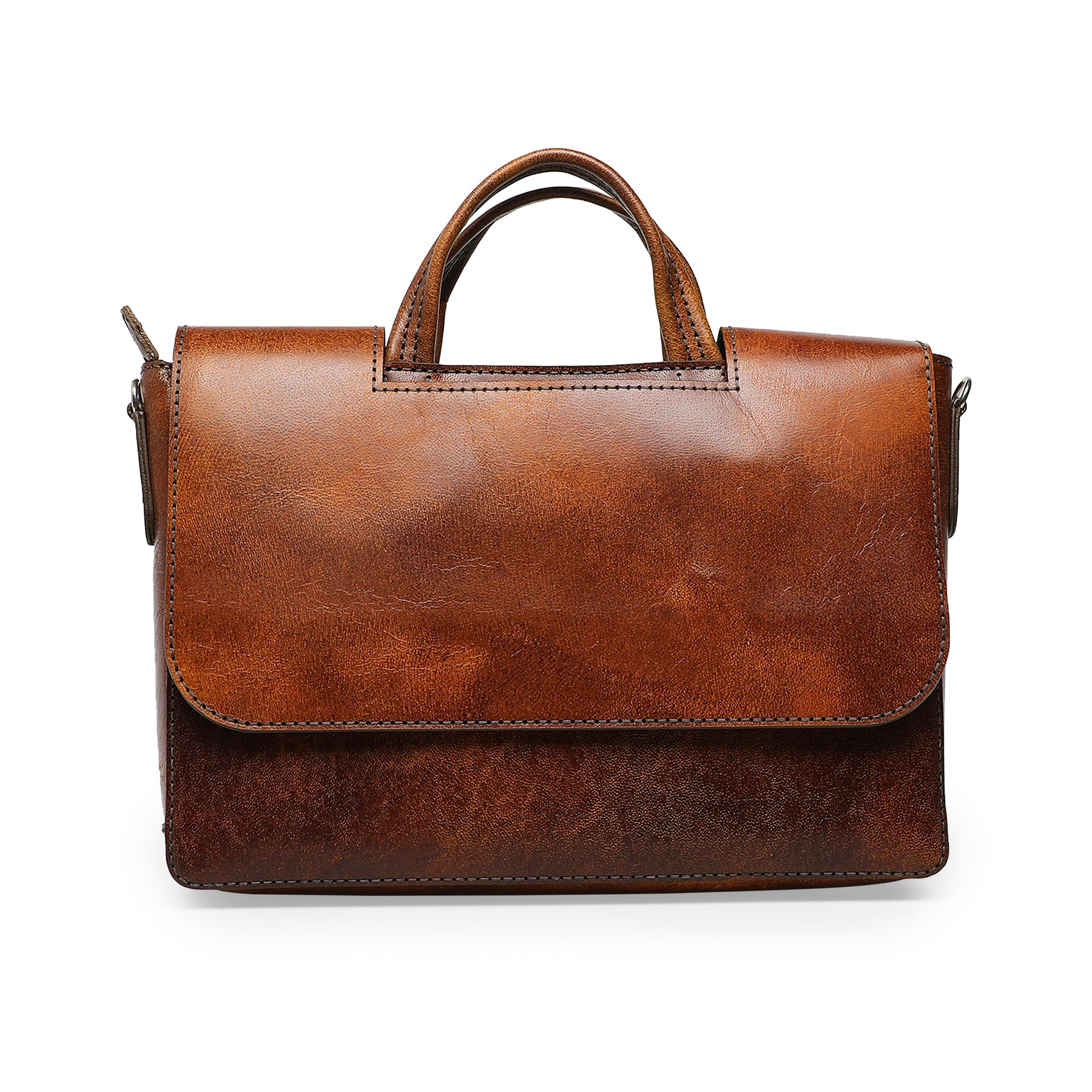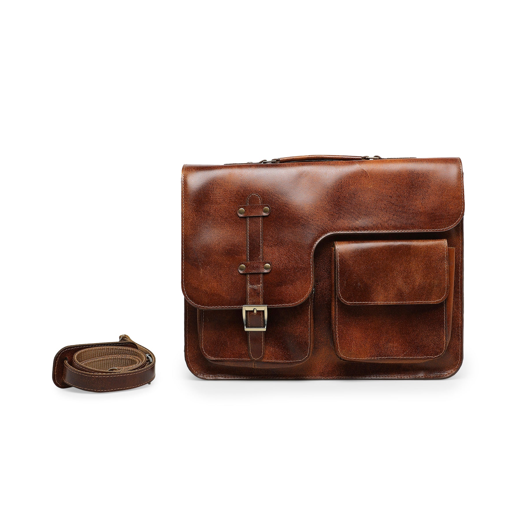 A timeless carrying option for the urban nomad, crafted from genuine camel leather, this messenger bag has an inner waterproof lining and high-quality metal zipper closure and attachments to ensure long-lasting. It features two large compartments and an interior organizer for all your essentials, such as mobile/tablet, chargers, wallet, sunglasses, keys, small diary, pen, passport, credit cards, etc.