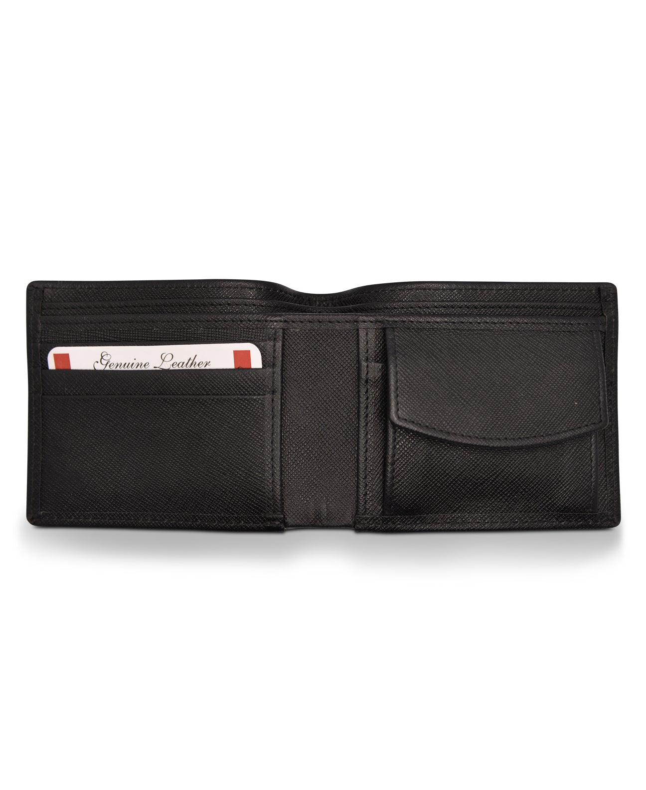 Men's Bi Fold Slim Wallet Mettalic Black Genuine Leather RFID Blocking